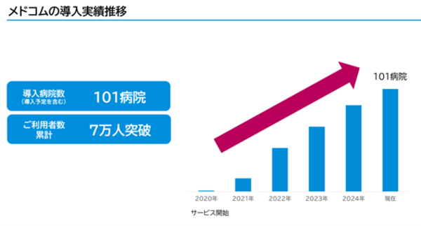 医療機関専用スマートフォン「メドコム」を提供する株式会社メドコムは、デジタルを活用した病院内の生産性向上への関心が高まる中、導入病院数(導入予定含む)が100病院を超え、また利用者数が7万人を突破したことをお知らせします。また、2026年はより現場業務に即した機能開発を加速し、更なるプロダクトの価値向上を図ってまいります。